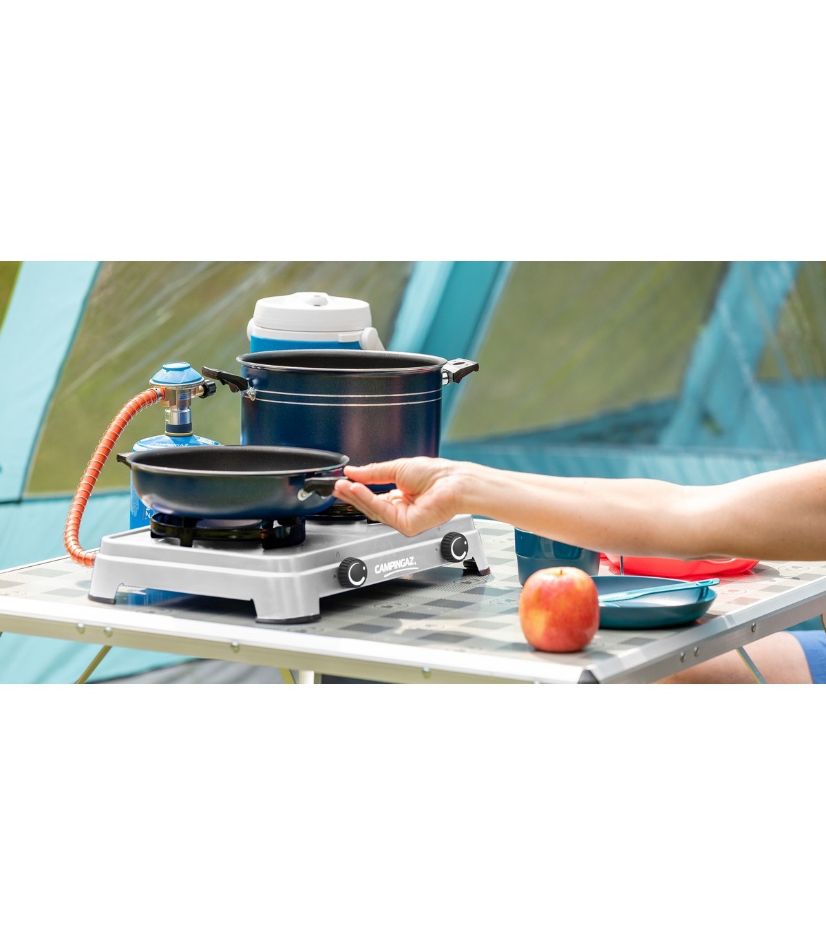 Kompaktne, vastupidav ja lihtsasti kasutatav CAMPING COOK matkapliit. Lisatarvikuid ega seadistamist pole tarvis, kuna voolik ja regulaator on juba kinnitatud. Lihtsalt ühendage kiirühendusega gaasipurk ning kahe 1800W iseseisvalt reguleeritava põletiga saate küpsetada sõpradele ja perele maitsvaid toite.